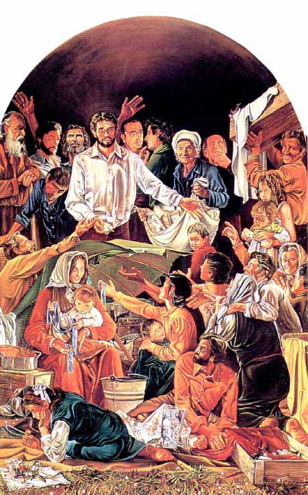 1984 - Realizzazione del dipinto " Il Miracolo dei pani e dei pesci" cm.280x180 olio su tavola - nella chiesa parrocchiale di Donoratico.