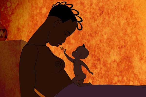 villaggio africano e, appena nato, parla, cammina gattoni e
