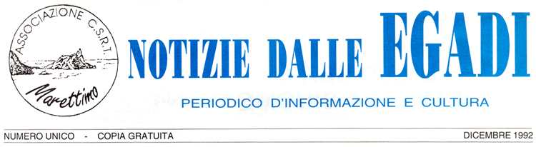 Dal desiderio di unificare e di informare gli abitanti delle Egadi sulle condizioni e i problemi che travagliano le isole e con l'intento di rilanciare e promuovere iniziative atte a migliorare la vita su questi splendidi, ma spesso disagiati "scogli", nasce oggi questo primo numero di "Notizie dalle Egadi", ideato e voluto dall'Associazione Culturale Sportiva Ricreativa e Turistica "Marettimo". Si tratta di un periodico aperto, indirizzato a tutti gli abitanti delle tre isole con i quali si vuole instaurare un proficuo e costruttivo rapporto di collaborazione, al fine di abbattere vecchi ed ormai anacronistici campanilismi alla ricerca di un equilibrio che abbia come ultimo fine il benessere economico e lo sviluppo sociale di tutto l'Arcipelago. Il motivo per quale questa iniziativa nasce a Marettimo è di facile intuizione.