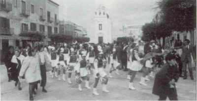 della Chiesa. L'ingresso delle Majorettes accompagnate dalla banda musicale. La