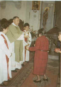 Il Rito si è svolto a Trapani nella Chiesa adiacente alla Casa Religiosa. Ha presenziato S. Ecc. Mons. Vescovo Domenico Amoroso, ha concelebrato Padre Damiano (Parroco di Favignana), Mons. Adragna, Padre Piazza (Francescano), Padre Carmelo (Carmelitano), Padre Impastato ed il Cap-pellano Padre Nicola Rach.