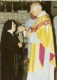 Il Vescovo ha fatto risaltare l'eccellenza dello stato religioso. Hanno accompagnato il rito i cantori della Cattedrale. Infine S. Ecc. ha comunicato la Benedizione del S. Padre e letto il telegramma della Rev.ma Madre Generale: "festosa ricorrenza cinquantesimo invochiamo dal Signore abbondanti doni spirituali a conforto dell'impegno fedeltà divina chiamata et generosità servizio Chiesa estendibili Comunità Madre Generale e Sorelle Comunità Romane".