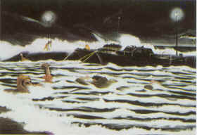 L'opera come dicevo ricorda, il nostro Agente motorista sulla Motovedetta del Servizio Navale, scomparso mentre cercava di salvare la "sua pilotina" aggredita dal mare in tempesta.