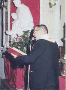 Padre Marcello benedice la statua di Santa Maddalena a ricordo del XXV di presenza Canossiana a Favignana