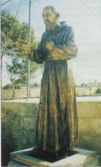 Alcuni devoti di Padre Pio, in pieno accordo con il Parroco, hanno raccolto, casa per casa, delle offerte per acquistare la statua in bronzo, alta mt.1,70 al costo di Lit.