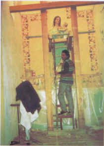 L'intervento operativo è stato di eccezionale portata, con il consolidamento delle superficie, rimozione dei depositi pulverulenti applicando sul manufatto una triplo sovrapposizione di telo tarlatana con colle naturali.