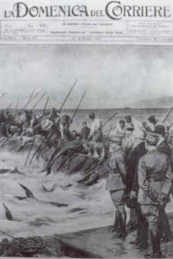 Il Re in Sicilia. Durante il suo giro trionfale nell'isola. Il Sovrano ha avuto occasione di assistere ad una movimentata "mattanza".