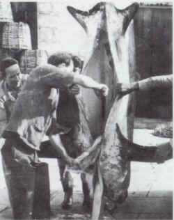 Il mare delle isole li incanta e non sanno fiutare la cattura che li blocca al passaggio nella trappola congegnata per loro. Ampie sono le gallerie di reti molli comunicanti che conducono inesorabilmente all'ultima vasca dove non ci sarà più scampo. Sono troppi là dentro, e la rete di fondo si solleva lentamente!I tonni affiorano atterriti e si dibattono, s'infuriano, si urtano impazziti; i loro dorsi lucenti guizzano, balzano. Sono travolti in una sarabanda di morte che si colora di rosso e di rubino. Ai cenni del Rais che abile guida le sequenze della pesca, la "ciurma" intona la nenia del sacrificio. Inebriati ed affollati sulle barche, i tonnaroti armeggiano con addestrato sincronismo arpioni, fiocine, aste uncinate per trafiggere ed agganciare la preda senza guastarne la carne pregiata. Rampini ed argani serviranno ad issare a bordo il pesante corpo del tonno che crolla sul fondo della barca in un ultimo guizzo di vita.