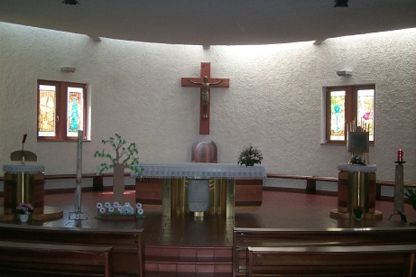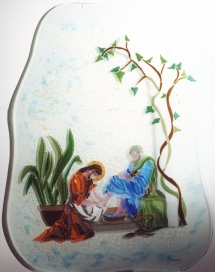 Le rappresentazioni sacre (icone) in vetrofusione presenti sulle pareti sono opera dell'artista gradese Jonny Cester.