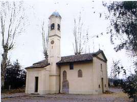 La chiesetta di San Bernardino dedicata al santo ha origini molto antiche. Le prime notizie certe risalgono al 1600, in uno scritto del prevosto di allora Agostino Pozzo, che la cita piu' volte parlando anche della cascina e dei casolari che ci sono attorno. Documenti risalenti agli anni successivi raccontano della visita alle cascine della zona effettuata da San Bernardino nel 1444 che vi sosto' per un breve periodo e i contadini diedero questo nome " a ricordanza della visita ". Il simbolo di San Bernardino e' un sole raggiante entro cui sono scritte le lettere J.H.S. che simboleggiano il nome di Cristo. E' rappresentato su una recente vetrofania posta sopra l'ingresso della chiesetta ed e' anche il simbolo della omonima contrada che ogni hanno partecipa alla manifestazione del Palio, ricordo della battaglia dei comuni contro il Barbarossa(1176), che si tiene durante il mese di Maggio. La chiesetta nel corso dei secoli ha subito una serie di rimaneggiamenti: aggiunta dell'abside, della sacrestia, del campanile, chiusura e apertura di porte e finestre e l'ultimo restauro (1992) ha portato alla luce sotto l'intonaco alcune finestre, feritoie e due porte laterali. Notizie storiche piu' dettagliate possono essere recuperate presso la casa parrocchiale. La chiesetta è purtroppo chiusa. Vibrazioni , probabilmente causate da vicine industrie per la lavorazione del ferro, hanno provocato crepe nei muri e il conseguente pericolo di crolli. |