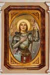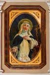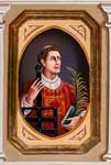 Nelle pareti laterali, sopra i cornicioni sono raffigurate immagini di Santi, nella iconografia di quegli anni. Alcune immagini sono andate perdute e furono sostituite con nuove immagini dal pittore Carcangiu di Serramanna, nell’ultimo restauro non 1984.