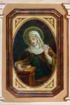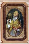 Nelle pareti laterali, sopra i cornicioni sono raffigurate immagini di Santi, nella iconografia di quegli anni. Alcune immagini sono andate perdute e furono sostituite con nuove immagini dal pittore Carcangiu di Serramanna, nell’ultimo restauro non 1984.