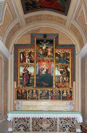 IL Retablo è una pittura su tavola divisa in scomparti. E' l'opera artistica più preziosa della Parrocchia. Apparteneva alla Parrocchiale antica di S. Maria, da cui il nome. Dismessa la Chiesa di S. Maria, perché cadente e non più adatta al culto, il Retablo venne portato nel 1860 nella parrocchia di S. Giovanni, e posto nel Coro dietro l'Altare Maggiore. Fu dipinto verso il 1560, è della bottega di Stampace (Cagliari), a quei tempi operante e presente in varie chiese del nostro territorio. Erroneamente attribuito ai Cavaro, senza alcuna firma, oggi è ritenuta dagli esperti "opera di Antioco Mainas" Ebbe un restauro a Cagliari nel 1922; da allora il Retablo è esposto nella prima Cappella a destra. L'ultimo restauro è del 1990-91. Alla base dell'altare, su cui sta il Retablo, è il Paliotto policromo, un tempo ornamento dell'Altare Maggiore: è di marmo bardiglio, diaspro di Sicilia e verde di Susa. Ha la dicitura: E.A.D. (ecce Agnus Dei) decano Mojran 1702. Ha 5 scomparti: al centro, Madonna in trono con Bambino e 2 Angeli assistenti al soglio. ai lati: S. Giovanni Battista e S. Michele arcangelo sopra: al centro: Crocifissione ai lati: Annunciazione (in 2 scomparti) sotto: al centro: Risurrezione ai lati: Ss. Pietro e Paolo, Ss. Antonio di Padova e S. Nicola, Ss. Cosma e Damiano; Ss. Lucia e Caterina d'Alessandria.
