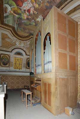 Un tempo sistemato dietro l'altare. Fu montato il 15 febbraio 1791. Dopo un lungo periodo di abbandono fu restaurato nel 1931. Nel 1950 fu trasferito nella Tribuna: in quella occasione fu fatto un nuovo restauro dai fratelli Piras di Pimentel, aumentando le canne. Fu poi dotato di motorino elettrico nel 1960 e nel 1989 E' da restaurare completamente.
