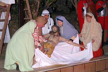 Dal 1991 si realizza in Parrocchia la "Sacra Rappresentazione della Passio Christi", il racconto evangelico della Passione di Gesų realizzato da oltre 100 attori, vissuto in 9 momenti significativi: 1) Risurrezione di Lazzaro; 2) Ingresso a Gerusalemme (le Palme); 3) l'ultima Cena di Gesų; 4) cattura di Gesų; 5) processo nel Sinedrio; 6) davanti a Pilato e condanna a morte; 7) crocifissione; 8) deposizione dalla croce; 9) annuncio della Risurrezione. Tutta la rappresentazione č registrata nel sonoro di cronista, vari personaggi e folla con forte e preciso accompagnamento musicale, lasciando agli attori solo il movimento espressivo del dramma. Il gioco di luci, dosato a dovere, obbliga gli spettatori a fissare sguardo e attenzione allo svolgersi dell'azione. La Passio viene realizzata all'aperto, nel Parco adiacente alla Chiesa Parrocchiale. La rappresentazione avviene ogni anno la Domenica delle Palme, al tramonto del sole. Dura circa un'ora. E' un fatto religioso di grande effetto, ben realizzato, da vedere a contemplare con fede.