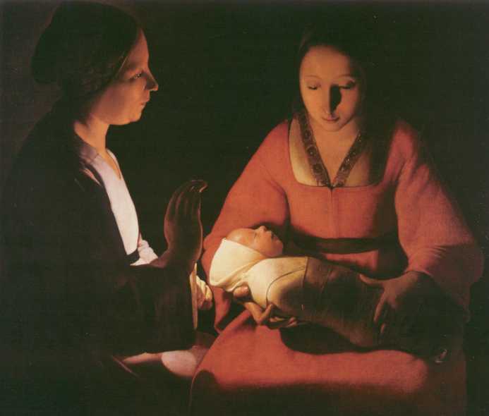 pregano e adorano il Bambino, è resa grazie alla sola luce della