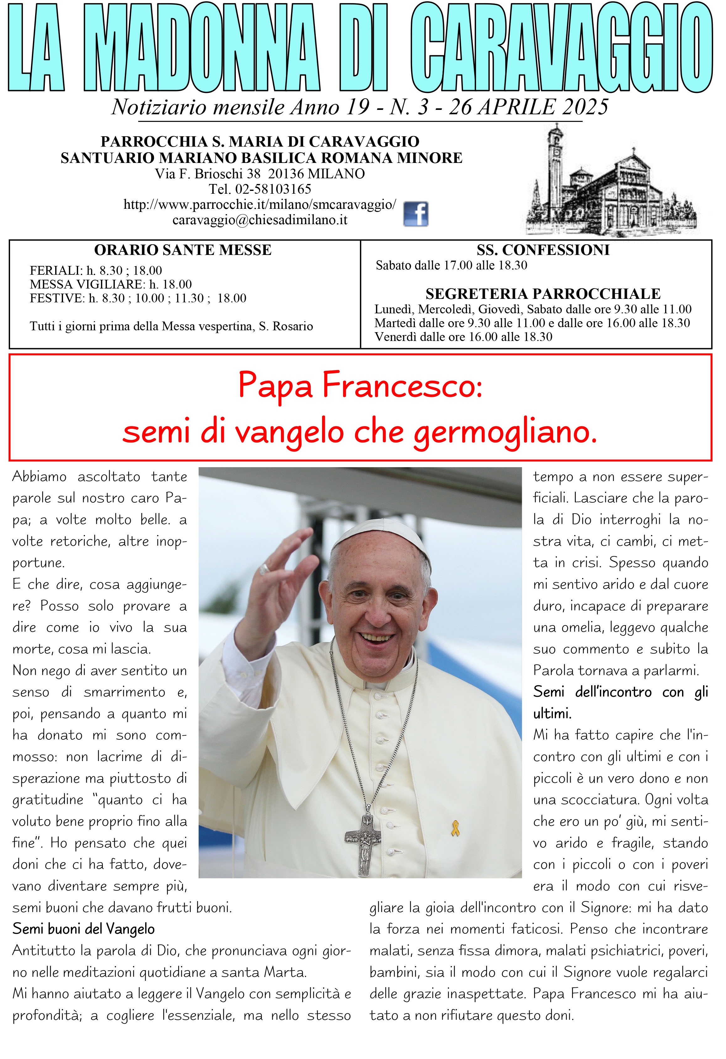 Benvenuti al sito della Parrocchia di Santa Maria di Caravaggio in Milano.