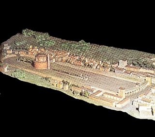 un intonaco di questo colore, che difendeva una povera tomba interrata. Sopra di essa ed addossata al muro rosso c'era una edicola a due piani, che gli studiosi riconobbero come il 'Trofeo di Gaio'
