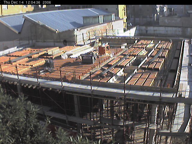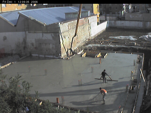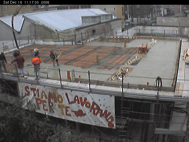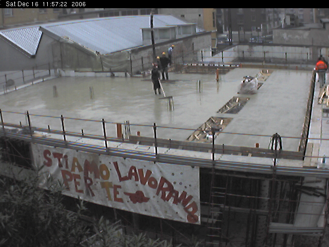 grande platea del cortile coperto. Un lavoro alacre: 27 camion di cemento!