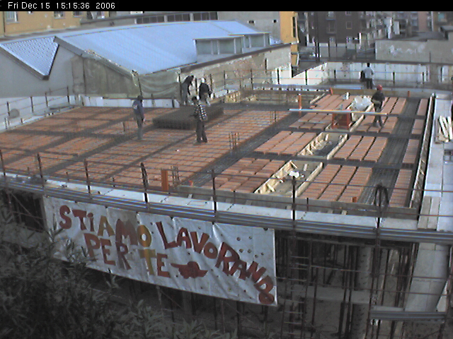 posa dei ferri della platea, ma si continua a lavorare alacremente con i