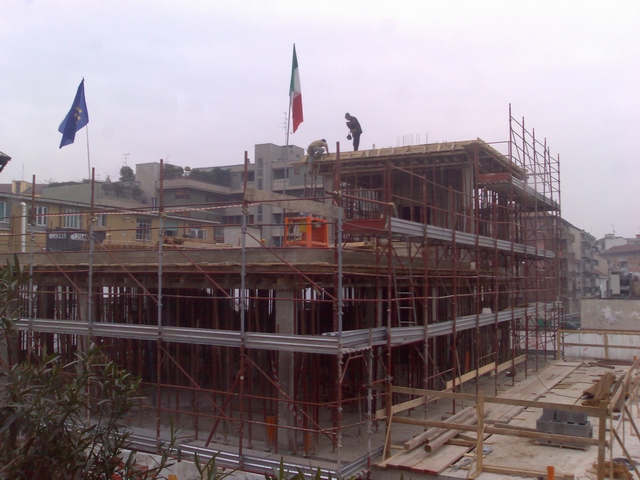 del campo di basket ed intanto si armano i pilastri del vano scale