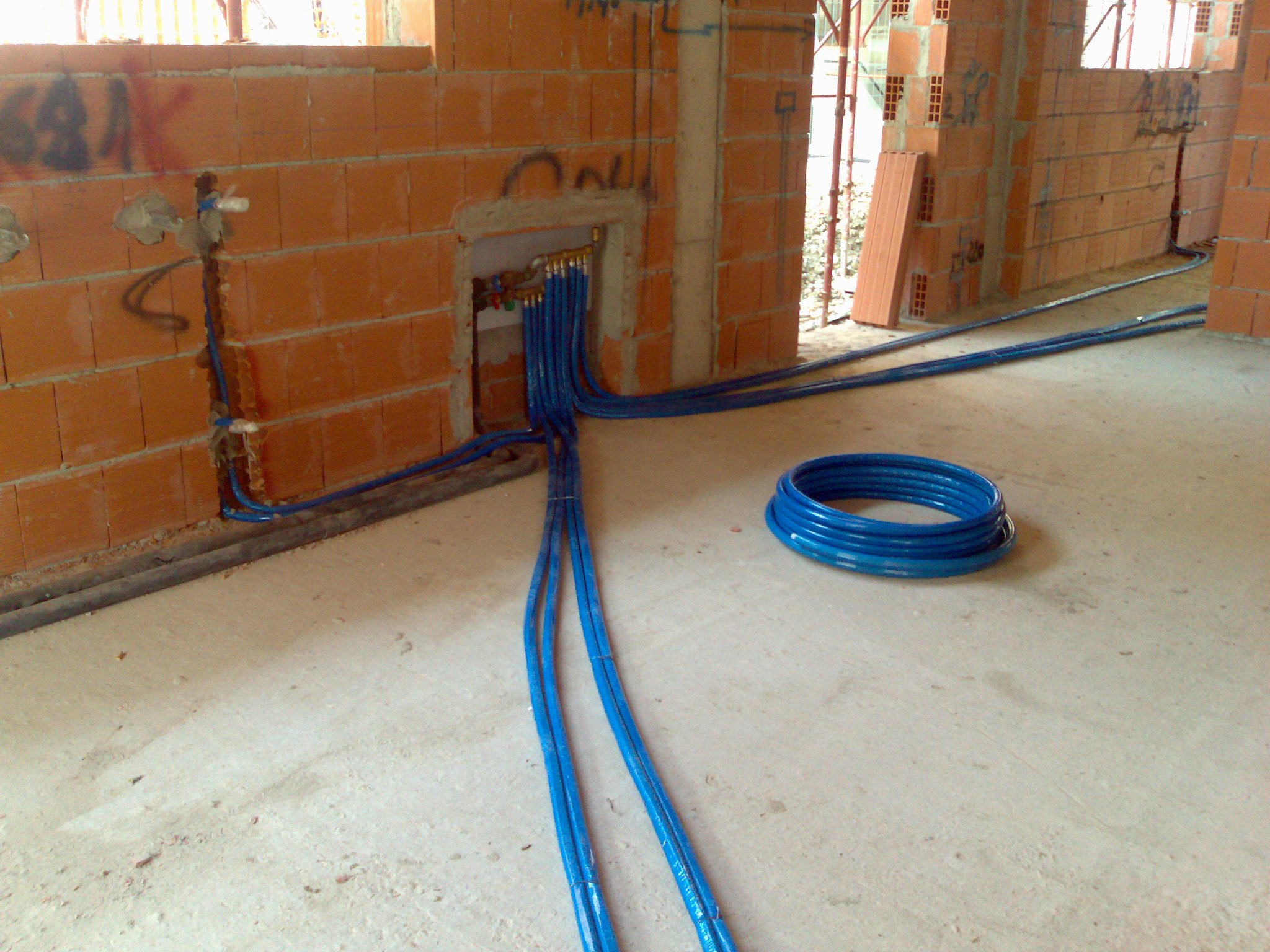 Nel contempo continua la posa dell'impianto di riscaldamento. Foto.