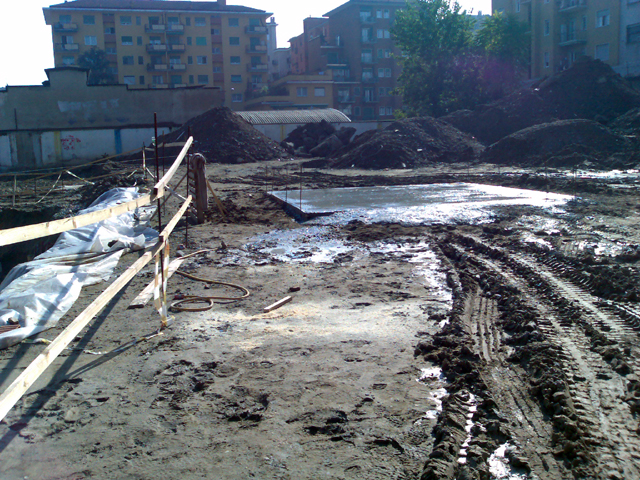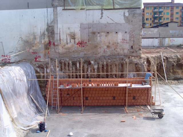 laterizi. Si scava attorno alla platea per permettere un lavoro più