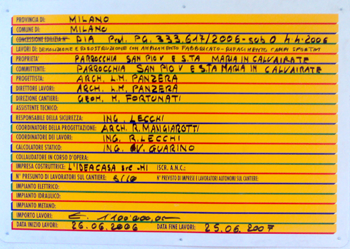 Viene apposto il pannello di cantiere. Foto. |