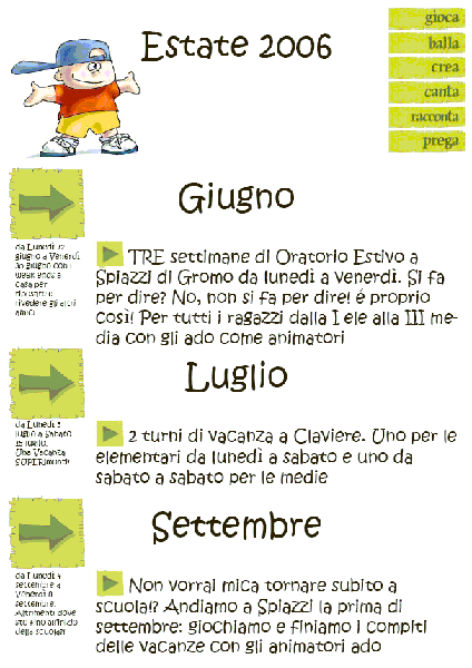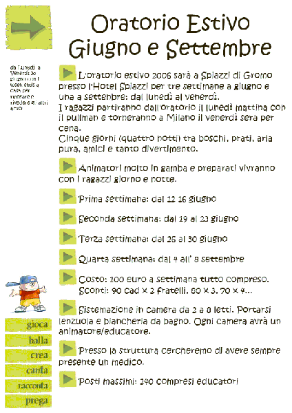 L'oratorio estivo 2006 sarà a Spiazzi di Gromo presso