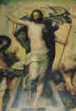 Opera del XVI sec., di ambito pittorico napoletano. Il quadro sembra essere diviso in due grosse aree cromatiche: una in basso scura e informe che determina la massa di soldati messi a guardia del sepolcro, un'altra rifulgente di una luce splendente e accecante che smaterializza il corpo di un Cristo che ha ormai abbandonato la sua natura terrena. La forza che sospinge il Cristo verso l'alto è sottolineata dal movimento vorticoso e ad ampie falcate del drappo che lo avvolge e la gloria della risurrezione si diffonde e risuona intorno alla figura vittoriosa del Salvatore.