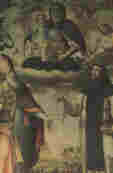 Il dipinto, eseguito con colori a tempera, rappresenta le figure dei Santi Biagio e Leonardo assorti in atteggiamento mistico e contemplativo. La parte superiore è occupata dall'immagine della Vergine con il Bambino, immobile, bloccata in una fissità spirituale e trascendente. Dal basso, dove è appena accennato il mondo con le sue miserie e i suoi peccati, sale attraverso l'imponente figura dei Santi un'implorazione di misericordia e l'atmosfera che si respira è quella di un'attesa serafica di riscatto e di perdono che presto saranno concessi dall'immensa bontà della Vergine. I colori sono intonati su gamme alquanto scure, con un timido accenno di rosso, verde e azzurro. San Leonardo è riconoscibile dalla catena che tiene nella mano sinistra, puro riferimento alla sua missione svolta a favore dei carcerati. L'ambito stilistico di appartenenza è napoletano ed il periodo di realizzazione dell'opera è il XIV sec. Un ultimo accento va al movimento ritmico e simmetrico degli angeli che costituisce una nota bizantina nella memoria storico-artistica dell'autore.