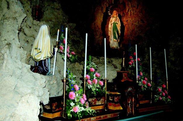 Una svolta determinante si è registrata con la costruzione della nuova parrocchiale (1889) che ha originato la conversione in santuario. All'interno è stata così realizzata, per volere dell'allora parroco di Monguzzo, don Pietro Colombo, una grotta sul modello di quella dove a Lourdes la Madonna era apparsa un quarantennio prima a Bernadette Soubirous: inevitabile è