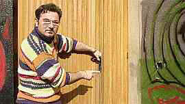 grafico-pubblicitario tra la parrocchia di San Carlo e la galleria.