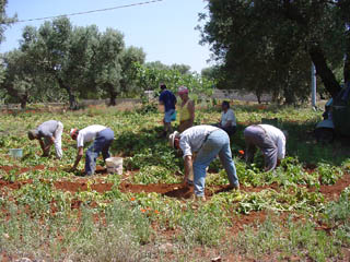 nostri compagni di chiacchera, piegati in due, spesso in ginocchio, a graffiare con le dita , con le unghie le zolle per raccogliere gigantesche pepite d'oro.