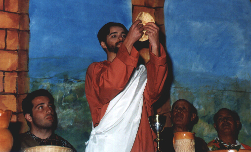 la tavola, arriva Gesù con tutti gli altri apostoli. Prima di spezzare