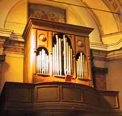 Soppalco con l'organo Sono esposte inoltre numerose tele: