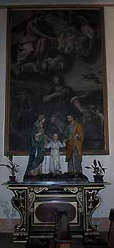 Altare San Isidoro con Sacra Famiglia L'organo, posto sopra l'ingresso, non è funzionante e in pessimo stato, venne fornito dall'"Antica Ditta Pietro Bernasconi e figlio" di Varese; assemblando materiale di provenienza ed epoche diverse. Al di sopra dell'organo, affresco con San Carlo in visita pastorale, della fine dell'800, con sullo sfondo, di scorcio, la facciata della chiesa di allora.