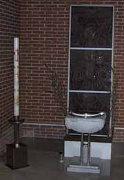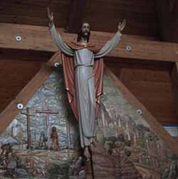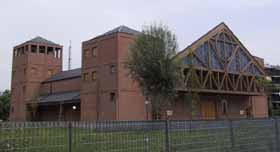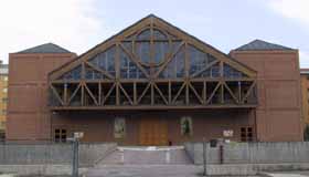Complesso chiesastico Nella zona ad est della frazione di Zeloforamagno, di più recente costruzione, sorge il grande edificio religioso intitolato a San Riccardo Pampuri, che ha sostituito la chiesa di San Martino nel ruolo di parrocchiale. Si tratta di un edificio modernissimo, dalle linee essenziali; è stato progettato dall'architetto Guido Canella (già progettista del viciniore Centro Civico). Il complesso chiesastico costituisce il primo di una serie di realizzazioni volute dalla Curia di Milano, la quale ha istituito una task force coordinata da monsignor Arosio, che ha voluto attuare il così detto "Piano Cardinal Martini" che prevede la costruzione di 25 nuovi complessi ecclesiastici, disseminati nella periferia e nell'hinterland milanese. Ha visto la posa della prima pietra il 21 Settembre 1986, alla presenza del Vicario Episcopale. In occasione del 600° anniversario del Duomo di Milano, tale antica pietra della Cattedrale, in marmo di Candoglia (40 x 20 cm.) è stata regalata alla Parrocchia per iniziare formalmente la costruzione della Chiesa (è visibile nella parte inferiore dove vi è il Battistero). ![]() Posa della prima pietra Nella relazione di progetto annotata dallo stesso progettista troviamo: "L'edificio religioso è a pianta quadrata con quattro torri angolari di differente dimensione sia planimetrica che altimetrica, tra loro connesse da falde che, parallelamente al tetto principale, si staccano dal corpo centrale a formare un portico continuo; il rettangolo entro il quale è iscritto l'intero edificio è di metri 41 x 37, mentre la effettiva superficie coperta è di circa 1000 metri quadrati.". ![]() Modellino del progetto L'edificio ecclesiastico è realizzato con il bel mattone lombardo che, con quella calda tonalità tendente al rosso, tampona sia all'interno che all'esterno la gabbia strutturale in cemento armato. L'immagine visiva che l'edificio propone fin dal primo impatto con la facciata principale che vede la presenza di due torri collegate al centrale timpano aggettante in legno lamellare, le conferisce un aspetto concreto, ben saldato al suolo. Facciata principale Nel contempo, la chiusura del tetto a quattro falde con una cupola quadrata la quale si stacca dalla struttura madre della pianta, invita a guardare al cielo, a guardare in alto. Si instaura così un rapporto tra terra e cielo, emblematico per questa tipologia di edifici, osservando la chiesa si avverte concretamente di essere in presenza di un luogo sacro, spazio di mediazione tra i due elementi. All'interno della chiesa vi troviamo la zona dell'altare sovrastante di tre gradini l'unico spazio dell'aula liturgica presente. In primo piano abbiamo l'altare e l'ambone (leggio) che è stato regalato dalla Fabbrica del Duomo (venne utilizzato nell'altare centrale nel periodo in cui erano in corso i lavori di ristrutturazione del duomo stesso). In secondo piano abbiamo il tabernacolo, la cattedra e un primo crocefisso. Nella parte retrostante, dove manca un vero e proprio abside, abbiamo nella parte superiore il Cristo risorto posto in alto al livello delle travi lignee. Visione interna Sullo sfondo del Cristo sono state realizzate […] Cristo in croce A sinistra entrando, troviamo il fonte battesimale, costituito da una coppa squadrata in marmo bianco, con quattro testine agli angoli; manufatto, di probabile origine barbarica, offerto dalla famiglia Parapini, rinvenuto anzitempo nel podere di Foromagno. Nella zoccolatura poco sopra il filo del pavimento si intravede la prima pietra di marmo di Candoglia. Fonte battesimale e Prima pietra Proseguendo sulla sinistra prima di giungere alla zona dedicata ad ospitare la corale, vi troviamo una statua bronzea, realizzata dallo scultore Ettore Cedraschi, in grandezza naturale di San Riccardo Pampuri; un pavese quasi nostro contemporaneo (1897-1930), medico chirurgo dell'ordine del Fatebenefratelli. Statua di S.Riccardo A destra entrando, superata la zona dei confessionali, vi troviamo una statua bronzea sempre realizzata dal medesimo Cedraschi dedicata alla Madonna. Statua della Madonna Proseguendo a destra in fondo vi è l'ingresso della sacrestia. Nelle due torri poste ad est, visibili in facciata, è possibile accedere al primo piano, ove attraverso le aperture delle travi di sostegno in legno lamellare si osserva dall'alto tutta l'aula liturgica. Mentre le altre due torri, poste ad est, una ospita la cella campanaria (le campane sono state tradotte dalla Chiesa di San Martino), mentre l'altra ospita la casa parrocchiale oltre alla sacrestia al piano terra. All'esterno della Chiesa, ma comunque all'interno dell'area recintata, sul vialetto di servizio ai box posto sulla destra guardando la facciata della Chiesa è posta una piccola edicola contenente una statuetta della Madonna. Edicola della Madonnina