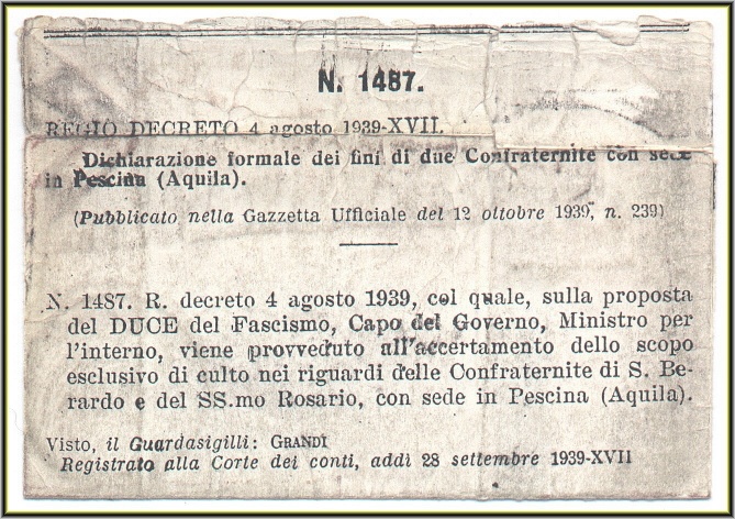 La Confraternita ha il compito dell'organizzazione dei festeggiamenti religiosi e civili: la festa religiosa e civile di S. Berardo si svolge il 2 Maggio; le feste civili vengono organizzate di anno in anno da un Comitato in carica.