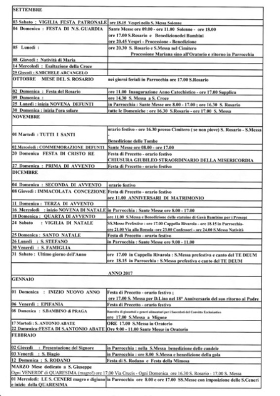 Solennità e Festività festeggiate nella nostra Parrocchia, con