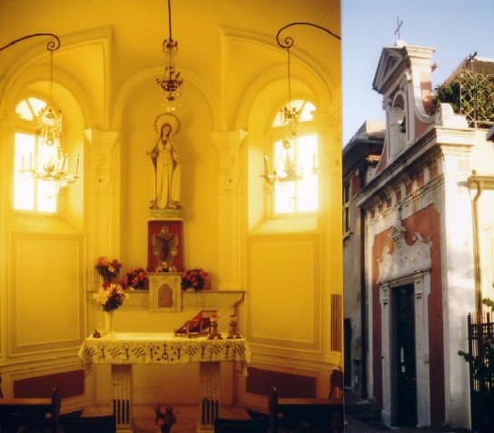 La Cappella, che incontriamo lungo l'Aurelia, arrivando a Pieve Bassa da Bogliasco, apparteneva all'edificio contiguo, una tra le più vecchie case di Pieve. Non se ne conosce l'epoca di fondazione e solo per gli anni più recenti se ne possono ricostruire i vari passaggi di proprietà, contestualmente alla stessa villa contigua. Nel 1906 ne è proprietaria Luigia Gnecco, quindi viene acquistata nel 1918 da Federico Gallo, fu Gio Matteo che due anni dopo la rivendette al cav. Lazzaro Stagno. Nel 1925 la Cappella è acquistata da Domenico Rivarola e nel 1983 passò per successione ad Antonietta Rivarola Guzzardi. Nel 1992 la signora Antonietta donò la Cappella e la sagrestia adiacente alla Parrocchia di Pieve con la condizione che ne venisse mantenuto il nome dei Rivarola. Sorta come cappella per uso esclusivamente privato, dopo la seconda guerra mondiale, anche per l'aumentata popolazione di Pieve Bassa, fu aperta ai fedeli con celebrazioni religiose nelle principali festività. Oggi, dopo importanti lavori di restauro eseguiti negli anni scorsi, viene regolarmente aperta alla gente di Pieve per la celebrazione della Santa Messa. |