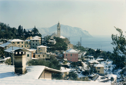 La Parrocchia "nevosa"Ecco la nostra parrocchia fotografata in una rara giornata di neve! Fa da sfondo un "canuto" Promontorio di Portofino! |