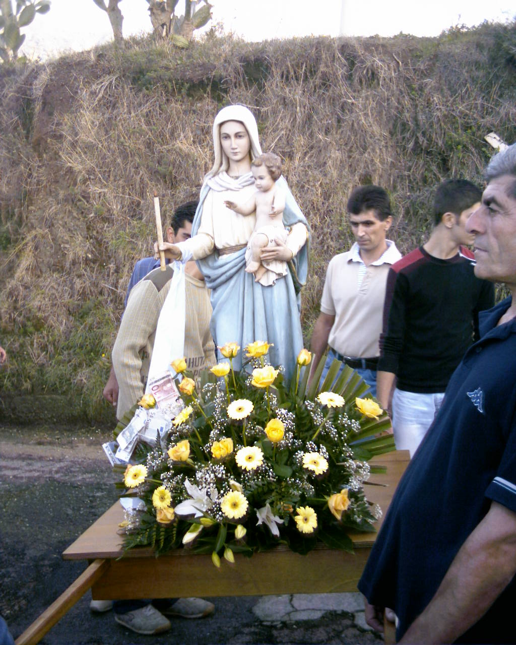Processione e sagrato della Chiesa di Fiumara durante la Festa del