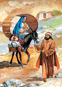 La S:Famiglia è come tutte le altre, normale, serena, in principio, ma poi è scossa come da un terremoto. Erode, passato alla storia come Erode il Grande si interessa personalmente di questo bambino e tutta la famiglia si trova avvolta da una grande minaccia tanto che devono fuggire, ”Alzati”,dice l’angelo a Giuseppe perché Gesù non venga ucciso come gli altri bambini di Betlemme e per alcuni anni vivrà come un rifugiato politico in Egitto