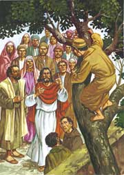 Con quale gioia poi è sceso dalla pianta, incurante delle dicerie della gente, per correre a casa sua ad aspettarti. Quanta gioia hai poi messo nel tuo cuore, quando gli hai assicurato che la salvezza era entrata nella sua casa..