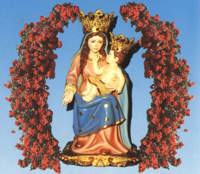 Vi giunse il 14 agosto del 1326, a bordo di un peschereccio, che, malgrado il mare placido, all' improvviso stranamente si arrestò nella piccola ansa sottostante l' attuale grotta. Nonostante gli sforzi dell' equipaggio turco, il peschereccio non si spostò di un millimetro. Il capitano, fervente cristiano, stava nel frattempo pregando nella sua angusta cella, davanti alla statua della Madonna. E qui lo sorprese la ciurma, che, inferocita, voleva gettare la statua nelle onde del mare. Solo il grande prestigio, che il capitano godeva sui suoi marinai, permise alla Madonna di lasciare indenne la piccola nave. E fu posta all' ingresso della Grotta sopra la grossa pietra nera, che per i Praiesi rappresenta una vera pietra sacra.