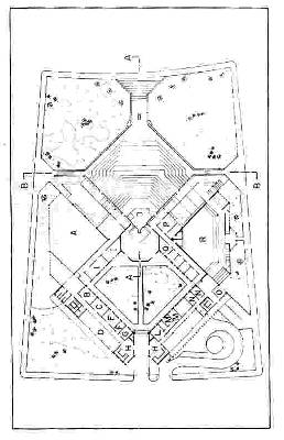 con l'asse di simmetria generale. L'ingresso principale è sul vertice