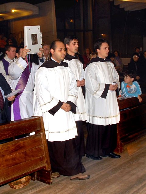 Il conferimento del ministero dell'accolitato a fra Carlos, fra Mihai e fra Sebastian