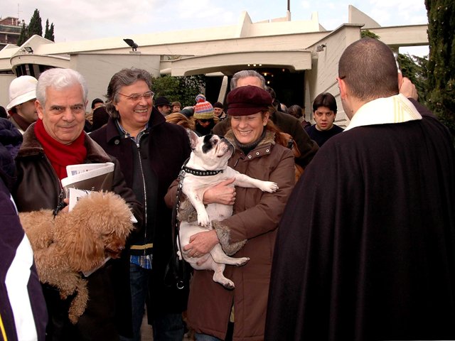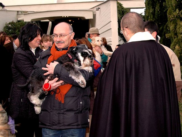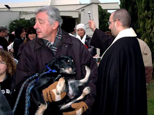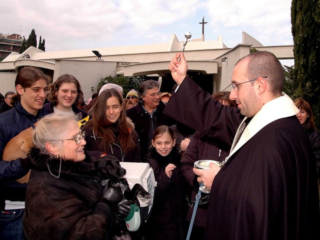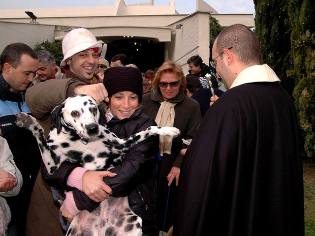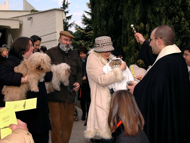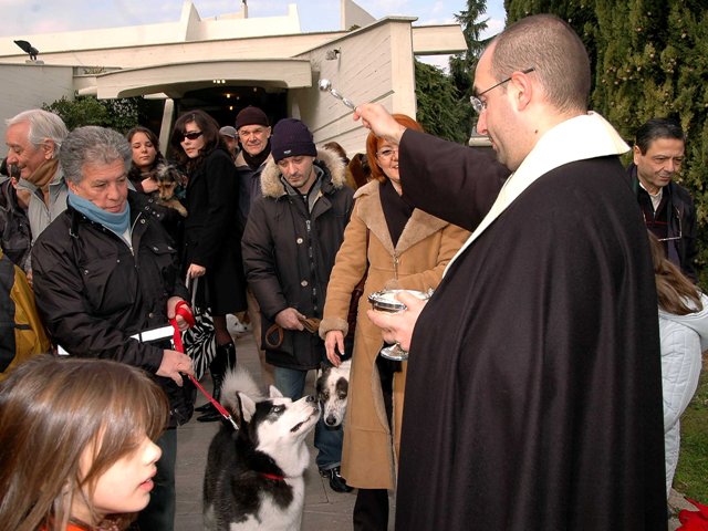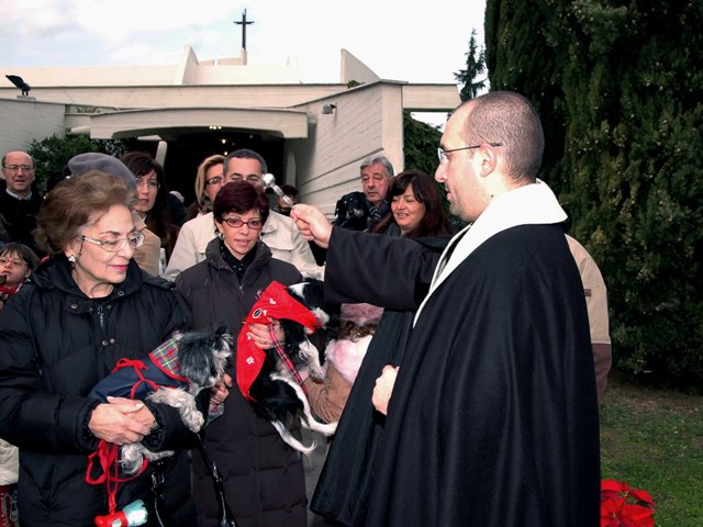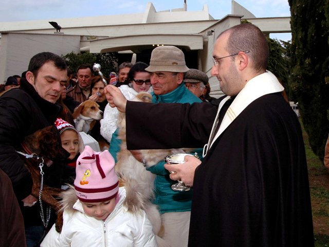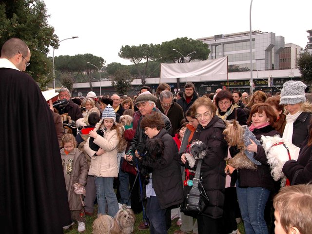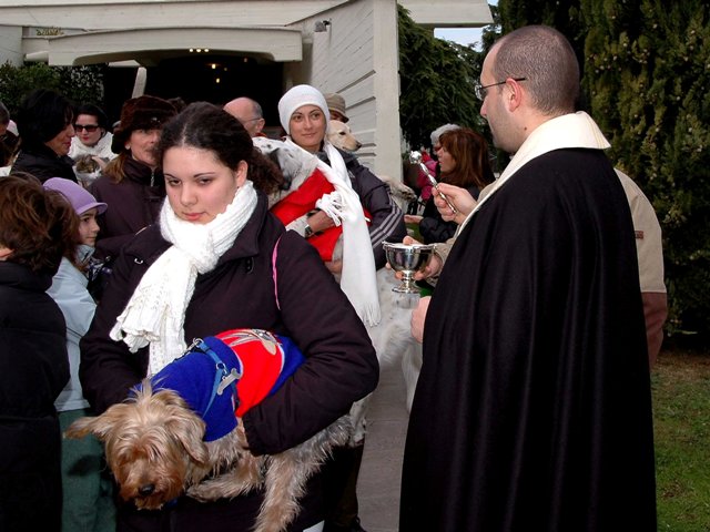 La benedizione degli animali fatta da p. Giuseppe davanti alla chiesa. 15 gennaio 2006