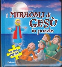 | E’ un libro illustrato per i più piccoli con i puzzle dei miracoli di Gesù: Gesù guarisce un paralitico, Gesù moltiplica i pani, Gesù cammina sulle acque, Gesù calma la tempesta, Gesù e la rete piena di grossi pesci. | |